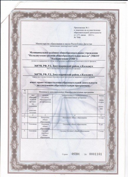 Адрес местонахождения образовательной организации* 368758 ,РД, Докузпаринский райн, с. Каладжух ул. С.Стальского дом33
